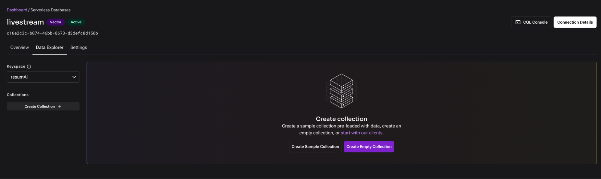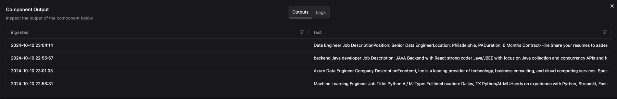 Great! You now have a collection of job listings stored in your database. You’ll use this later to perform a vector similarity search against the uploaded resume and return top job matches.