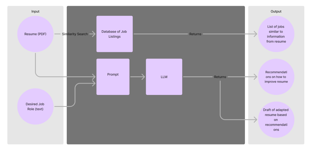 Input: As a user, I want to be able to upload my resume and specify the intended role I wish to apply to.