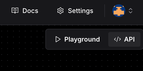 Above you’ll notice you imported run_flow_from_json from the Langflow package. This enables you to access the flow you built in your Python application via the Langflow runtime. You can find the starter code in the Langflow UI by clicking the “API” button in the top right corner.