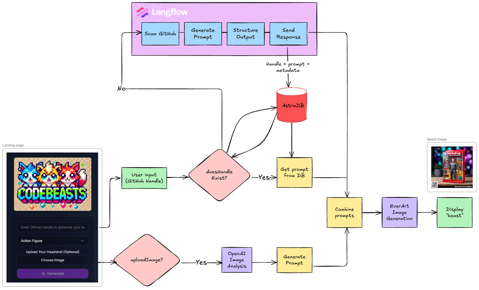 Hello, fellow dev nerds! 👋 Inspired by some intriguing displays at GitHub Universe, we embarked on a mission to create an app that generates unique, visually stunning "CodeBeasts" based on your GitHub activity. Let's dive into how this app, built with Langflow, Next.js, and Cursor, brings your coding history to life!